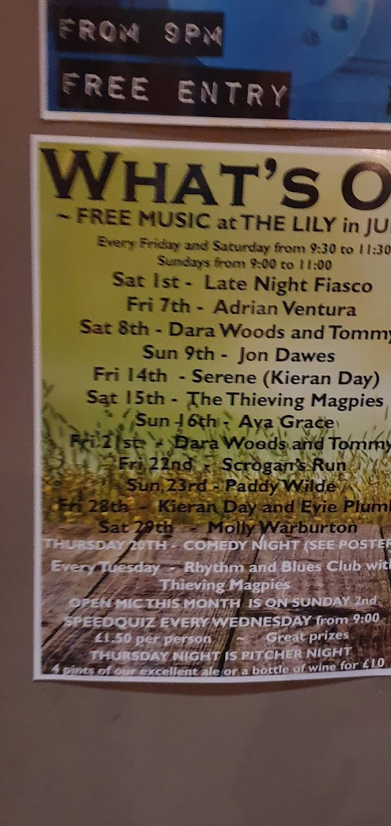 The Lily Bar Menu