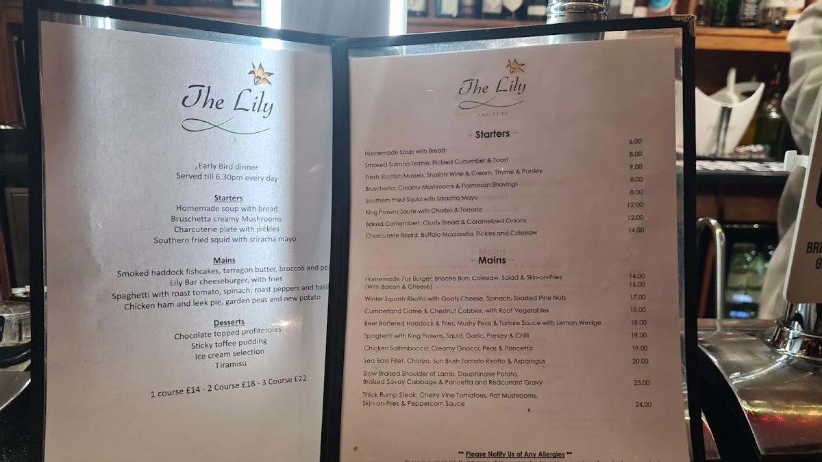 The Lily Bar offers a menu that balances relaxed dining with refined comfort, perfect for both casual gatherings and quiet evenings. The selection leans towards classic British fare complemented by fresh, seasonal ingredients, creating approachable dishes that feel thoughtfully prepared without fuss.