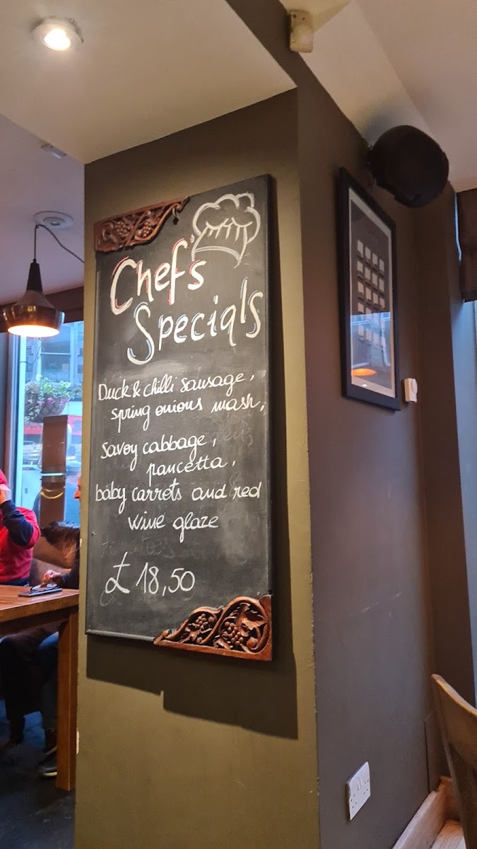 Guests can enjoy everything from hearty fish and chips with mushy peas and tartare sauce to more delicate options like sea bass risotto or seafood spaghetti. Starters such as southern fried squid or a charcuterie plate set a welcoming tone, while desserts like sticky toffee pudding and chocolate profiteroles provide a satisfying end to any meal.